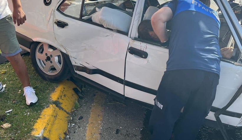 Kazada hurdaya dönen otomobilin sürücüsü araçta sıkışıp ağır yaralanmıştı.