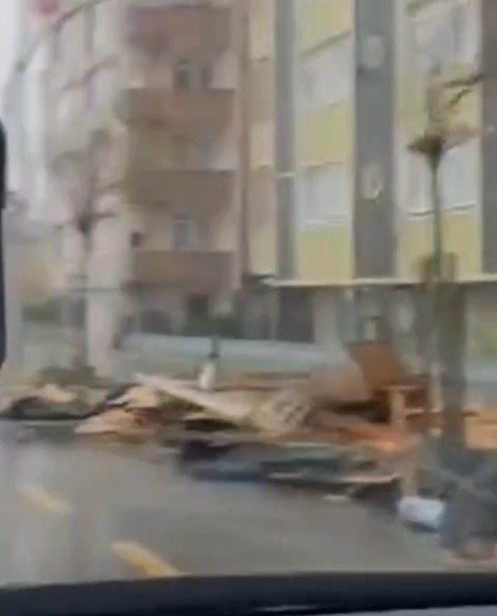 Doğu Karadeniz Caddesi'nde bir binanın çatısından kopan parçalar caddeye düştü. Olayda yaralanan olmadı.